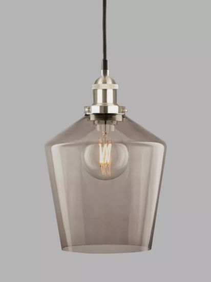 • Simple, crisp and classic, this glass cloche pendant is brilliant for installing directly above dining tables or kitchen islands. It's suspended from a height-adjustable cable and accented with metal detail. The glass shade is available in a choice of clear, smoked or lustre finishes with coordinating antique brass or silver hardware. To create a more industrial style in your home, choose an LED bulb with a decorative filament as it will stand out behind the glass shade.