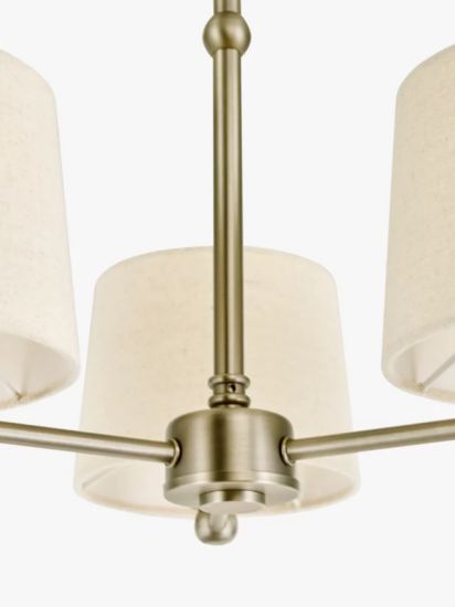 • With a traditional design that won't date, this semi-flush ceiling light is a great option in rooms where low ceiling height may be an issue. Designed with three arms to cast light around your space, its natural linen lampshades add texture, charm and help to diffuse the light. Three LED bulbs are required.
