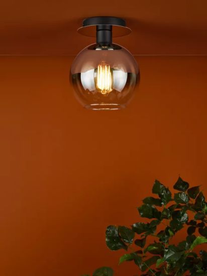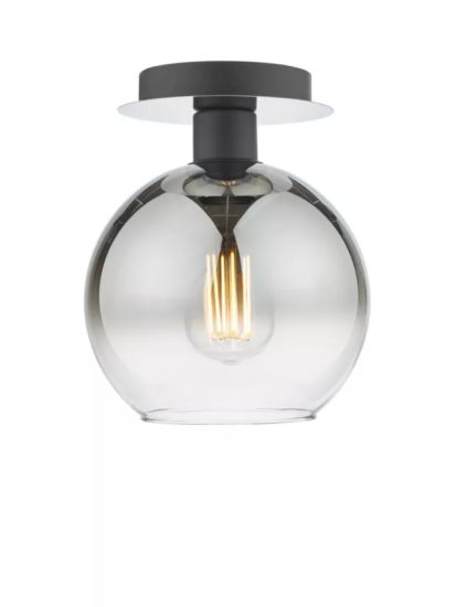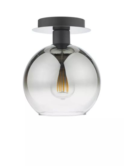 • The is a semi-flush ceiling light with a mirrored top plate and ombre glass globe. This simple modern light effortlessly integrates into any space, offering tasteful illumination while infusing a touch of contemporary style into your decor.