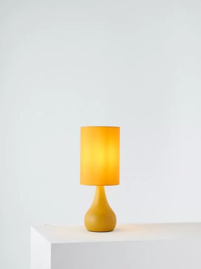 • With a fluid, teardrop-shaped base and tall cylinder lampshade, this modern table lamp is ideal for your bedside. Its touch functionality offers three light levels. Simply tap the base once to turn it on, again to make it brighter, and a final time to turn it off.