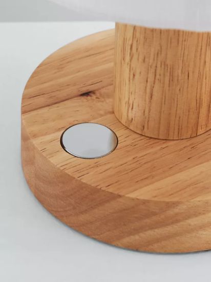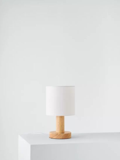 • We've made this compact table lamp with a wooden base and tall fabric lampshade. It's so easy to operate thanks to a touch on/touch off sensor on the base. Perfect for reading hour, it offers a warm glow of light.