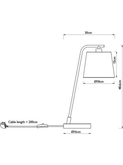 • Just the right size for your bedside table or desk, our table lamp has a compact base and leaning profile which allows the lampshade to hang over and cast a warm, diffused glow of light. It's easy to assemble and available in a range of neutral or bold shades, at a great price.