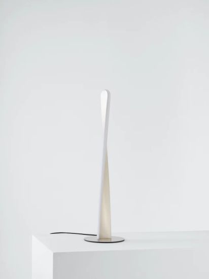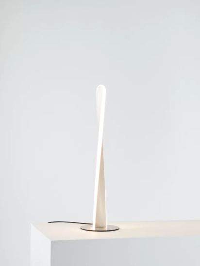 • This sculptural table lamp looks impressive both lit and unlit and we've integrated an LED module into its twisted shape. Tall in height with a compact round base, it offers a warm glow of light. It's subtle in its brushed metal finish but its unusual design will draw the eye.
